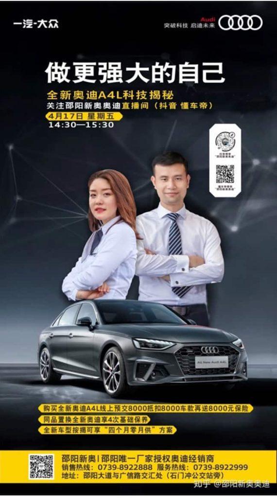 La diffusion en direct (livestreaming) : Ensuite, pour encourager l’interaction entre les fans d’Audi sur Douyin, ils ont également créé un groupe « Automobile Enthusiast Scene » pour guider les activités de livestream pendant le lancement en livestream de l’Audi A4L.