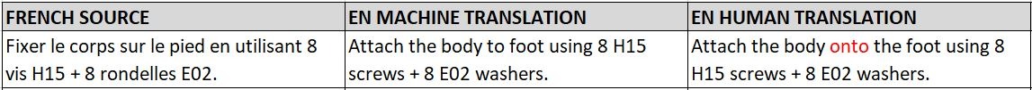 - En général, la traduction automatique a fait du bon travail en terme de précision et de lisibilité générale lors de la traduction de phrases très simples. Dans l’exemple ci-dessous, nous avons estimé qu’un seul petit changement préférentiel était nécessaire.