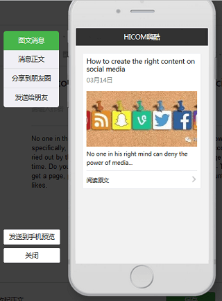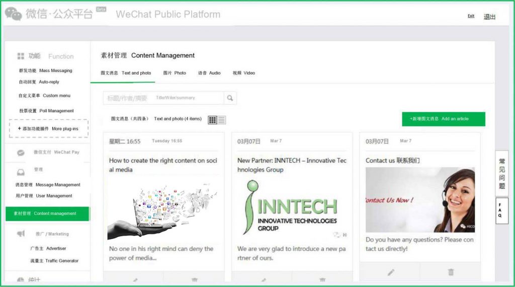Step 3: Write your article for Wechat account and save it by clicking on “Save and Mass Messaging”.