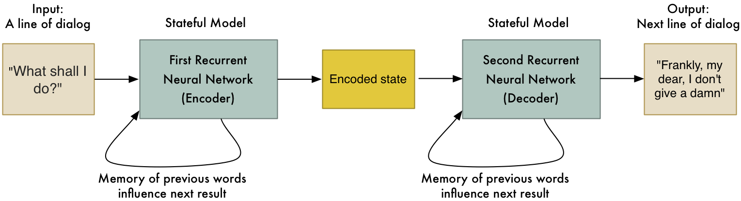 The first network called the encoder takes the vectorized sentences in the source language, calculates a representation of the corpus called a ‘context vector’ and then passes it to the decoder network, which brings the sentence from the context representation of the sentence to standard vectorized form. The vector is then translated using the previously compiled dictionary and the quality of the translation is assessed. Besides machine translation this same idea is used to build chatbots, object and speech recognition and image description which allows us to Google pictures of funny cats by simply typing ‘funny cats’.