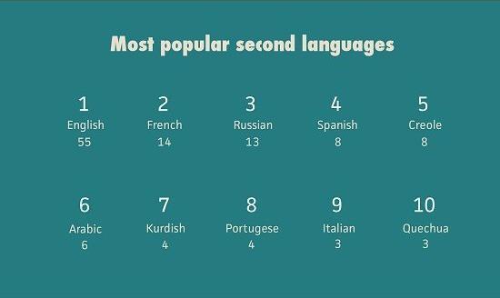 Tonnes of articles have covered the subject of the most spoken language in each country, but not so many go into more detail and talk about the second most spoken language in each country. According to reports, almost half the world is bilingual. Colonisation, borders and immigration have been some contributing factors to a second language being spoken in some countries. Unsurprisingly, English is the most spoken second language worldwide with it being spoken in 55 countries. French comes second (14 countries) and Russian third (13 countries).
