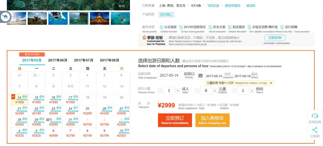 2. Our enquiry found 3814 offers. Here we can check prices (mostly for a group purchase), find out the travel dates of the tour, and more. You will probably still need your Chinese speaking friends to help you out to read your details. But RMB 1999 for a 6-day 4-night trip to Phuket including flight tickets seems like a pretty good deal to me!
