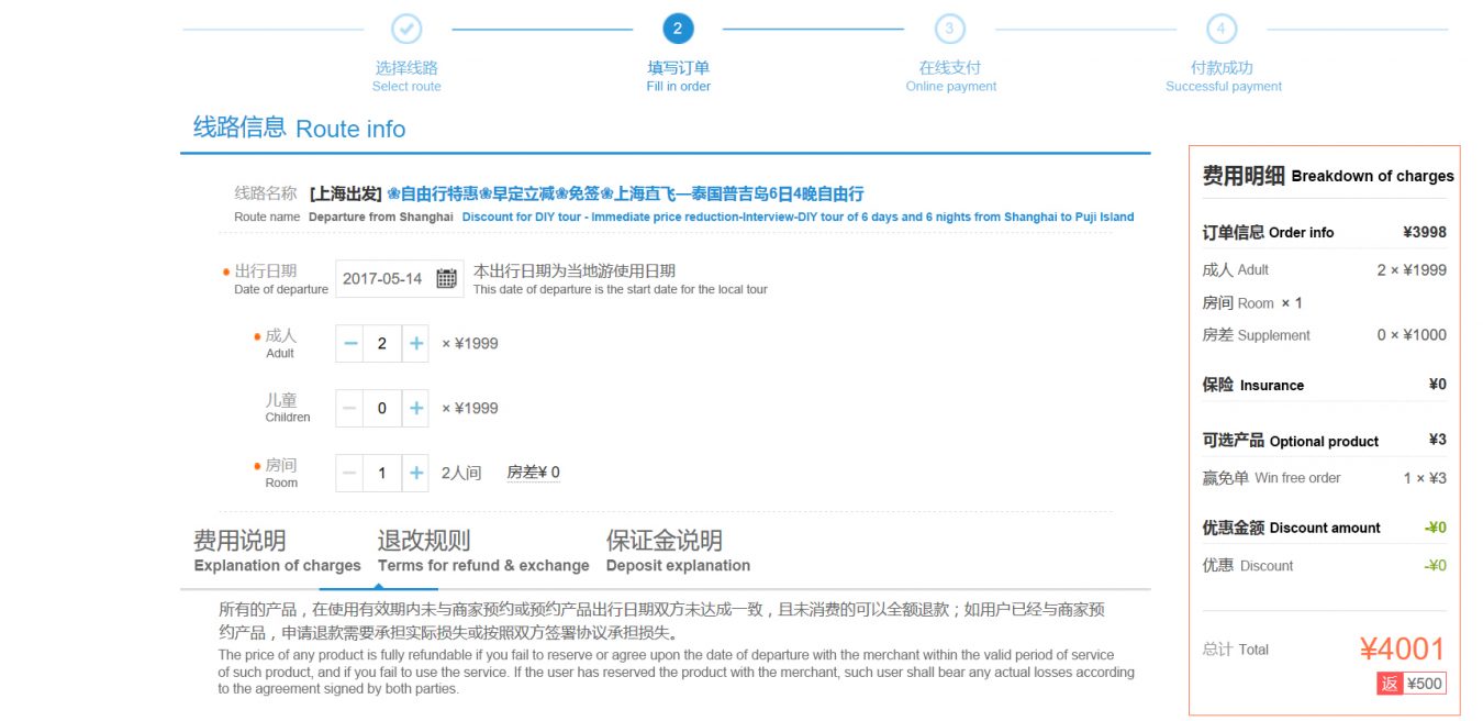 5. After you have entered all your selections, you can move to the next level – traveler info and payment. As we mentioned above, payment can be done in seconds using Alipay with just a simple scan.