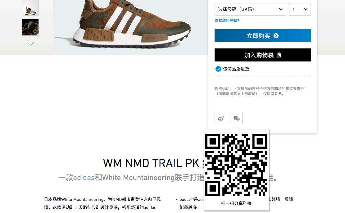 Adidas China est un bon exemple d’une localisation réussie. Le site internet comporte deux liens vers des médias sociaux chinois (Weibo et WeChat) et dispose aussi d’une ligne d’assistance en ligne 24h sur 24, d’une assistance par messagerie instantanée et des coordonnées de contact par e-mail. a deux liens clairs avec ses sites de médias sociaux en Chine – Weibo et WeChat, ainsi qu’un service d’assistance par téléphone disponible 24h/24h et leurs coordonnées e-mail.