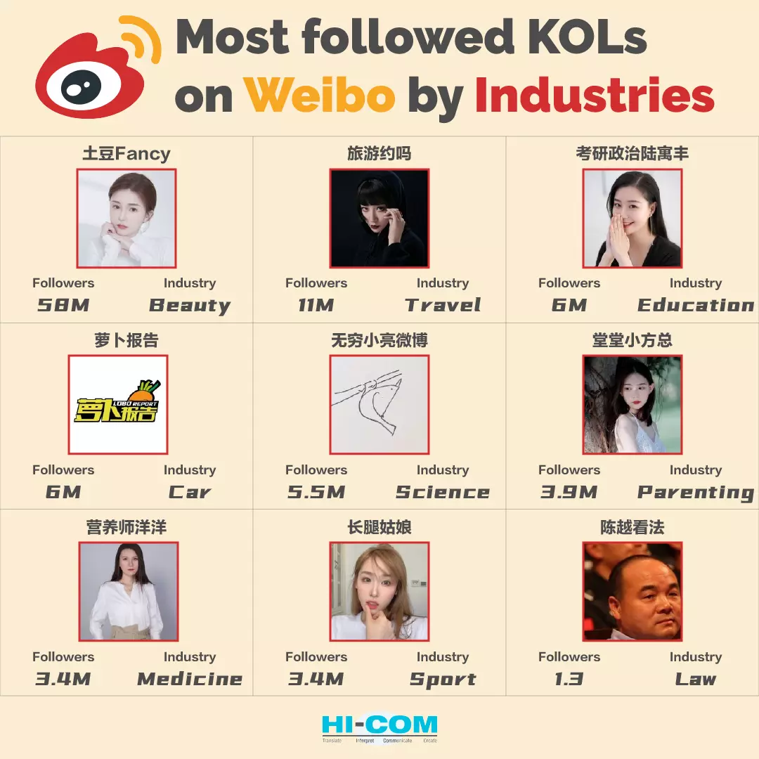 However, if you have no time to read articles, here is the list of most followed KOLs on Weibo in different industries in 2021: