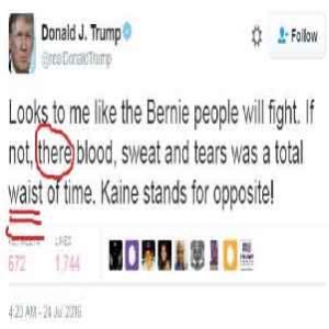 The structure of his sentences is often muddled, the meaning of his comments is sometimes unclear, and he has a tendency to waffle, repeat and exaggerate. His Twitter posts are also often littered with grammar mistakes.