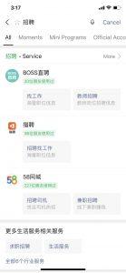 Service Search can be used by both users and businesses. When a user searches for a specific service on WeChat, WeChat will provide service related content. For example, if the user types “express” into the search bar then any relevant express services will automatically be displayed. This can reduce the search cost and improve the user’s overall experience.